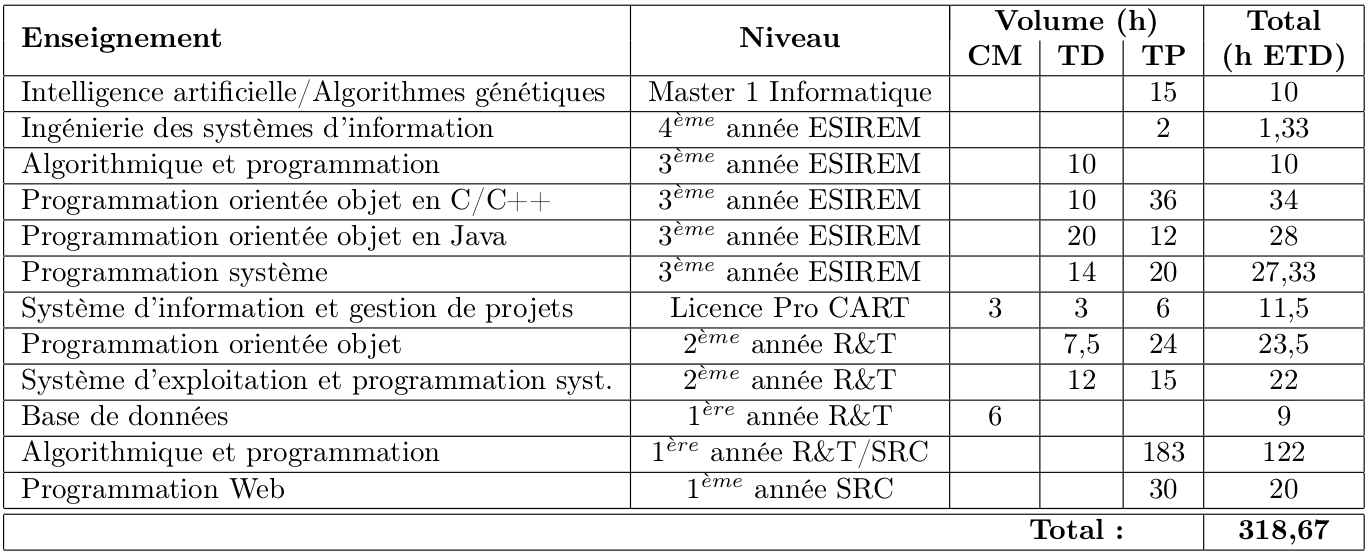 Enseignements portant sur l'algorithmique, la programmation et les bases de données