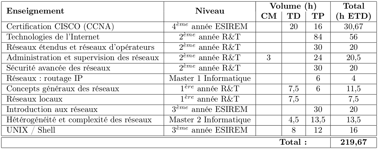 Enseignements portant sur les réseaux et systèmes